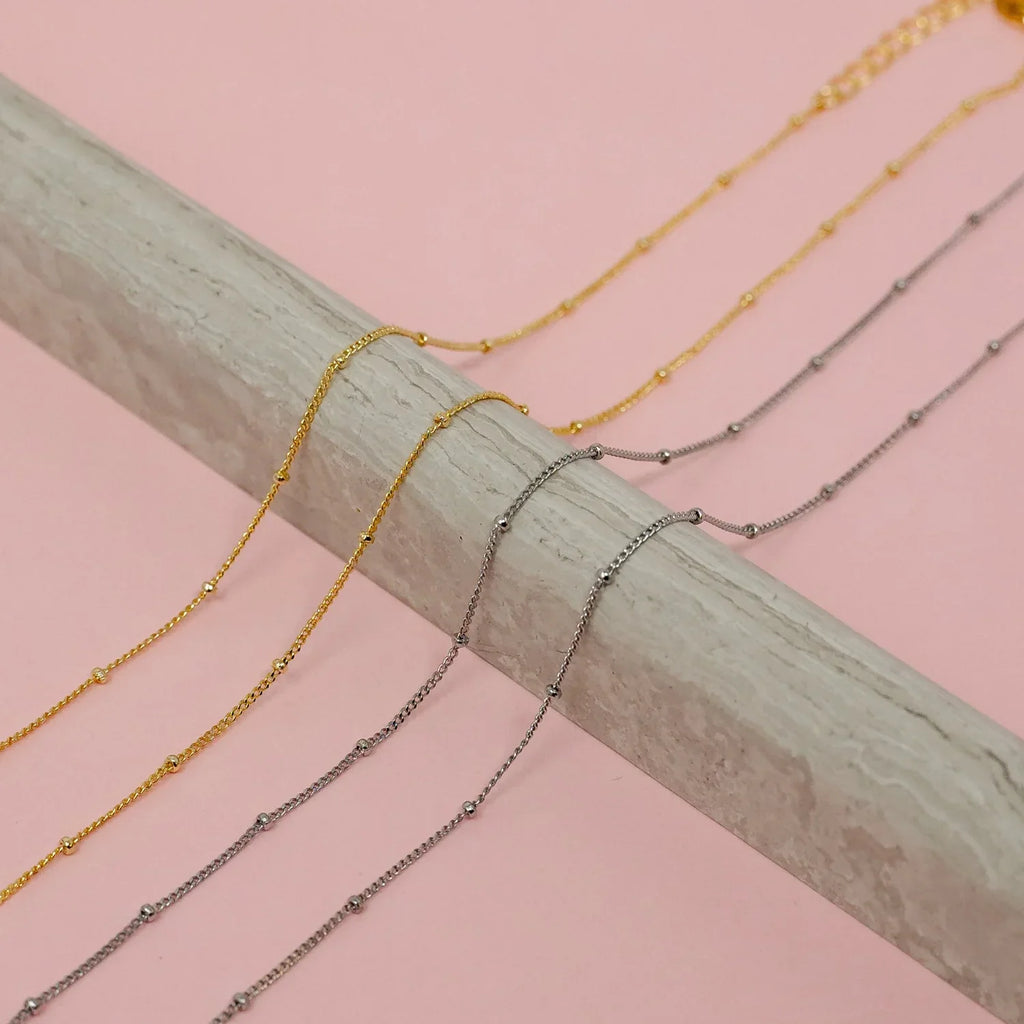 A perfect base necklace to wear alone, as a layering piece, or with your favorite charms! Available in gold or silver finishes.