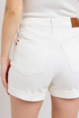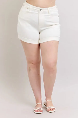 The high waist double roll cuff denim shorts offer a modern and stylish twist on a classic favorite. Featuring a flattering high-rise fit and double roll cuff detailing, these shorts are perfect for a chic and casual look. Pair them with a tucked-in blouse or a graphic tee for a trendy outfit. Show off your fashion-forward style with these high waist double roll cuff denim shorts.
