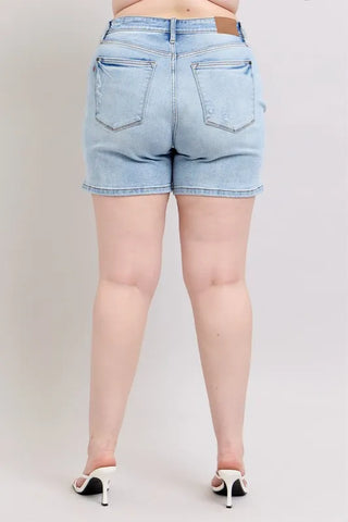Judy Blue Full Size Mid Rise Washed Denim Shorts Plus Size