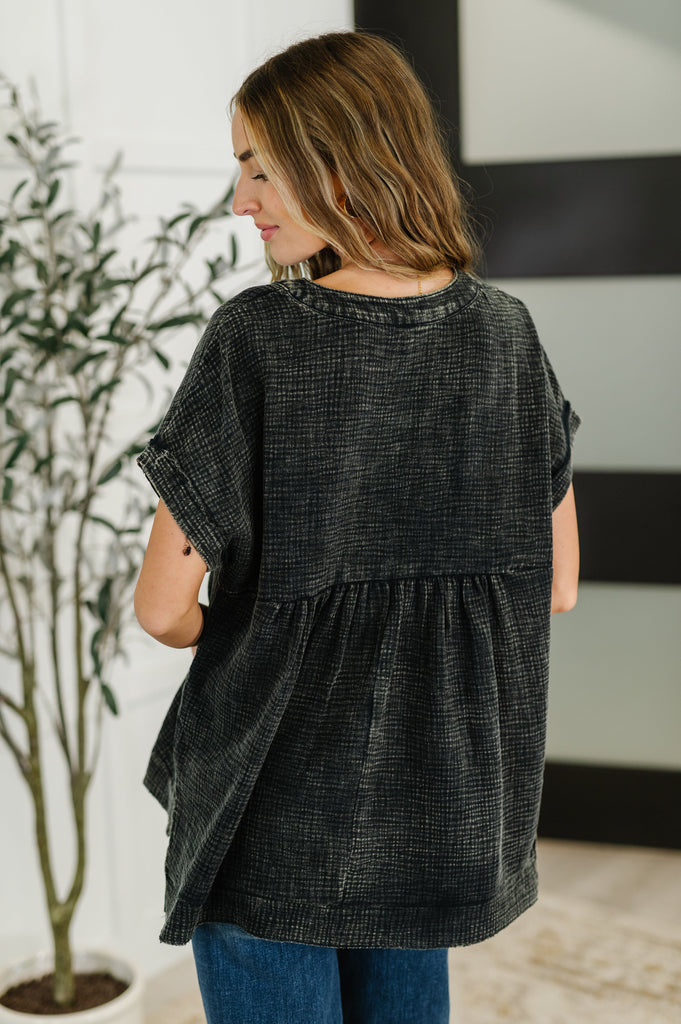 Basic Fade V-Neck Acid Wash Top in Ash Black