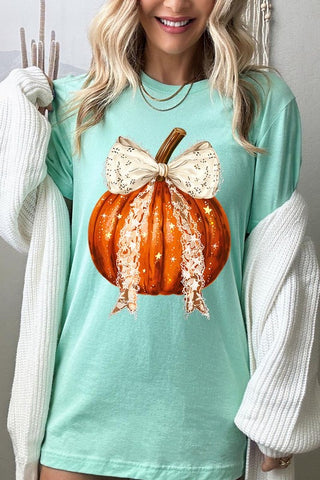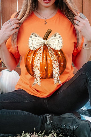 Coquette bow Halloween Pumpkin Graphic Tee.