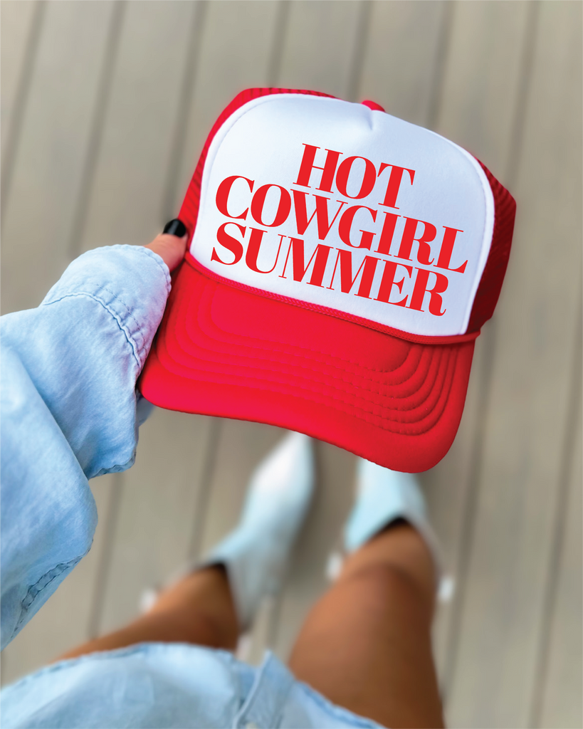 Hot Cowgirl Summer DTF Printed Red and White Trucker Hat