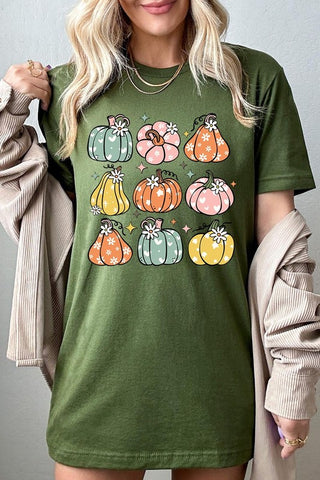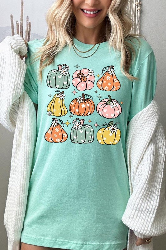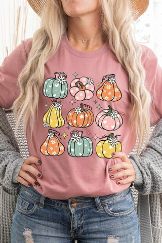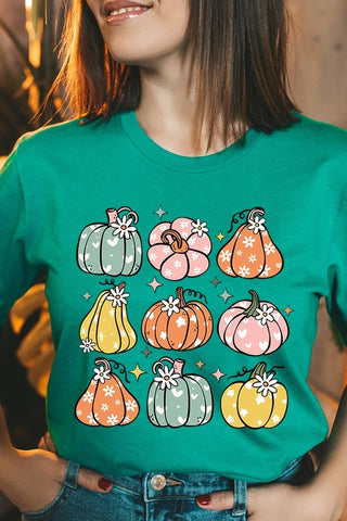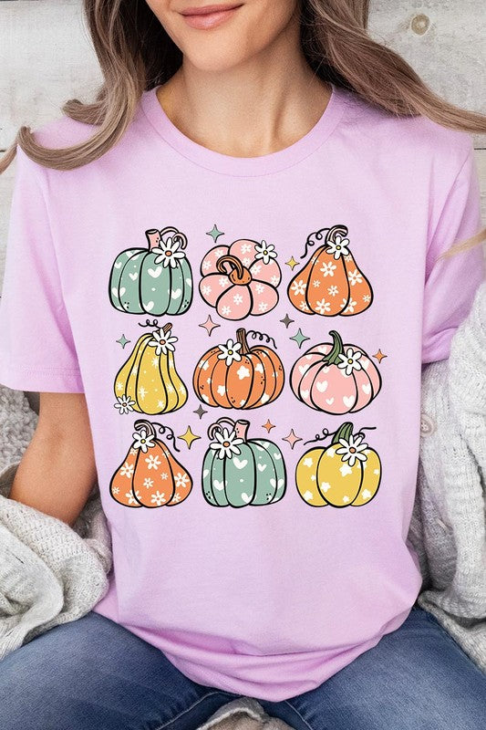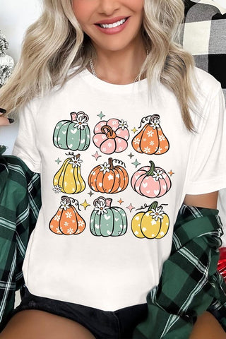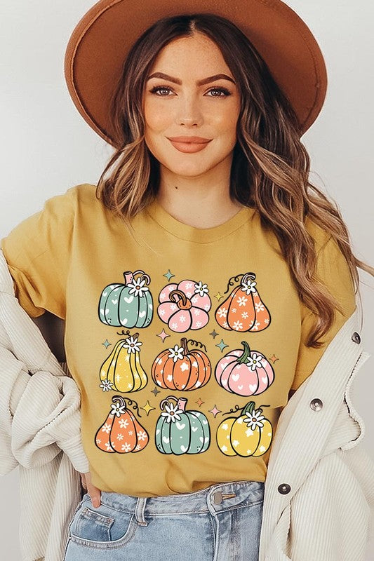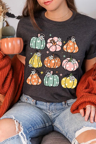 Pumpkins & Daisies Retro Fall Graphic Tee.