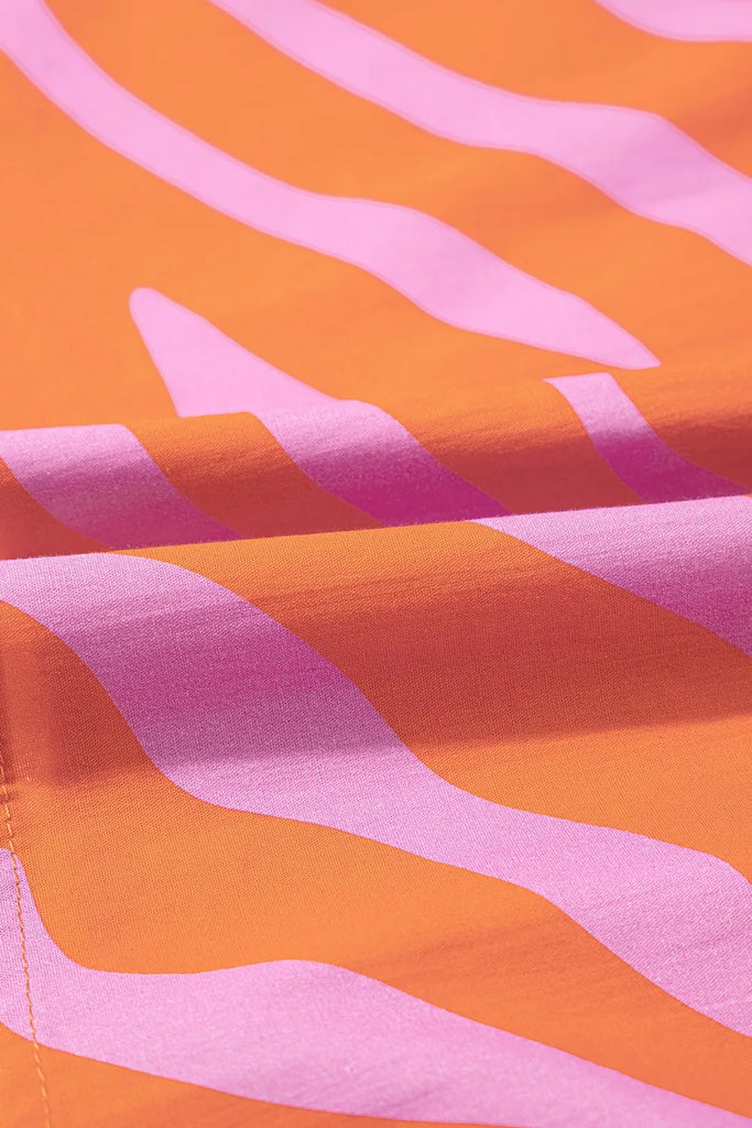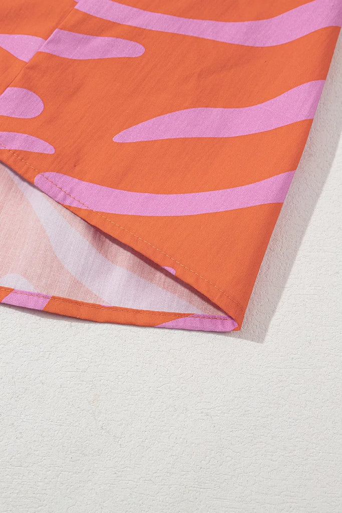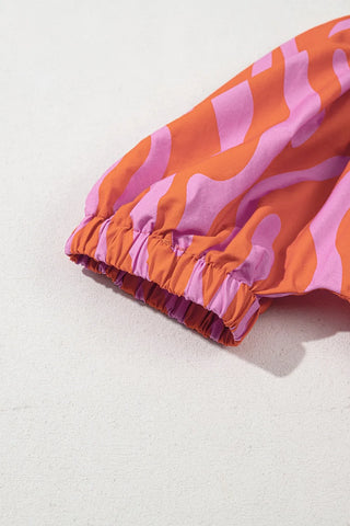 Zebra Stripe Print Ruched Cuff Half Sleeve V Neck Blouse